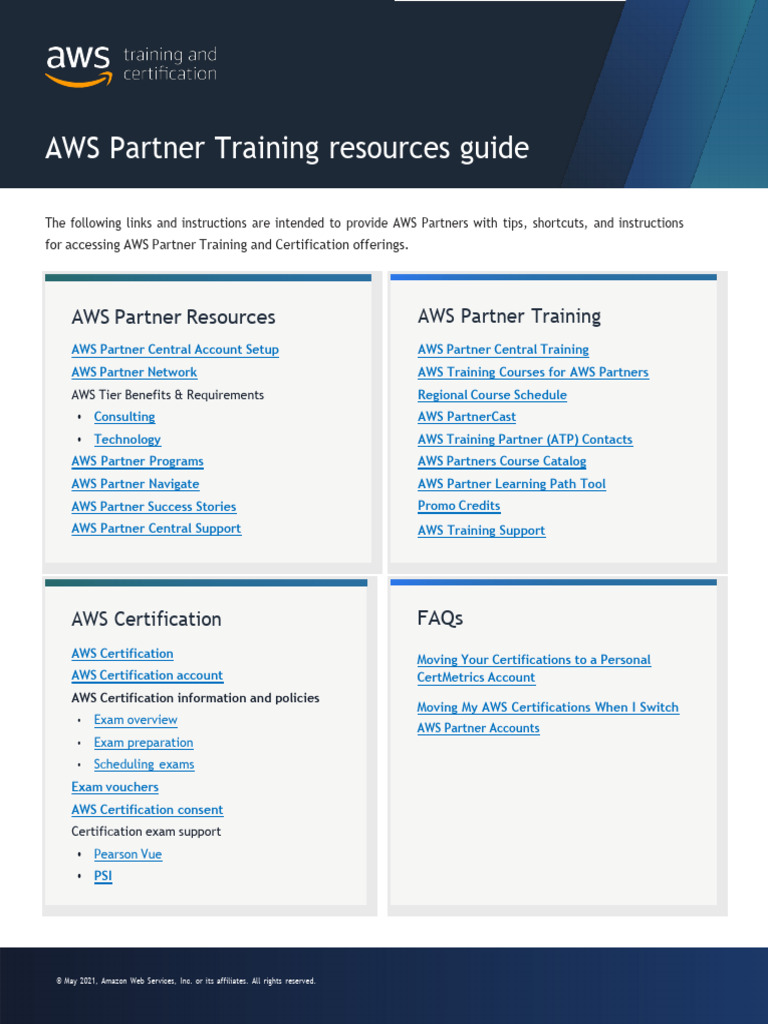 The following links and instructions are intended to provide AWS Partners with tips, shortcuts, and instructions
