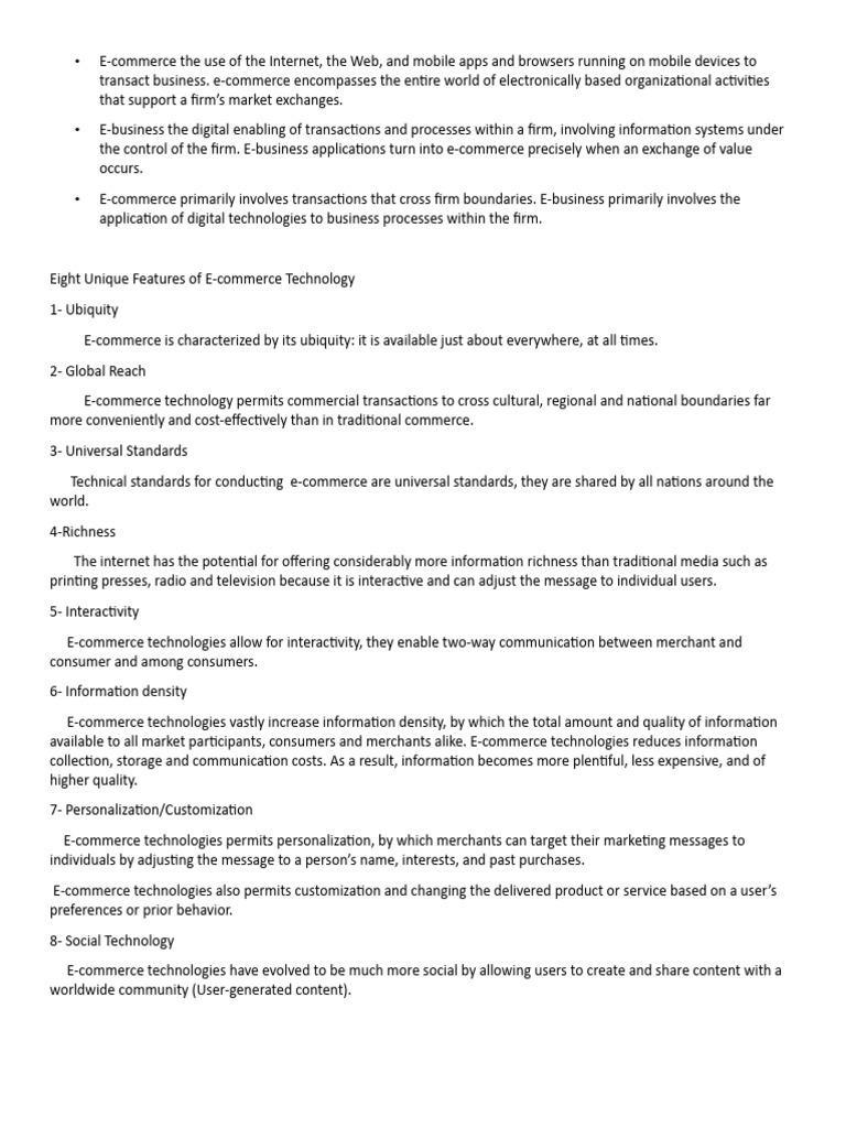 Eight Unique Features of E-commerce Technology