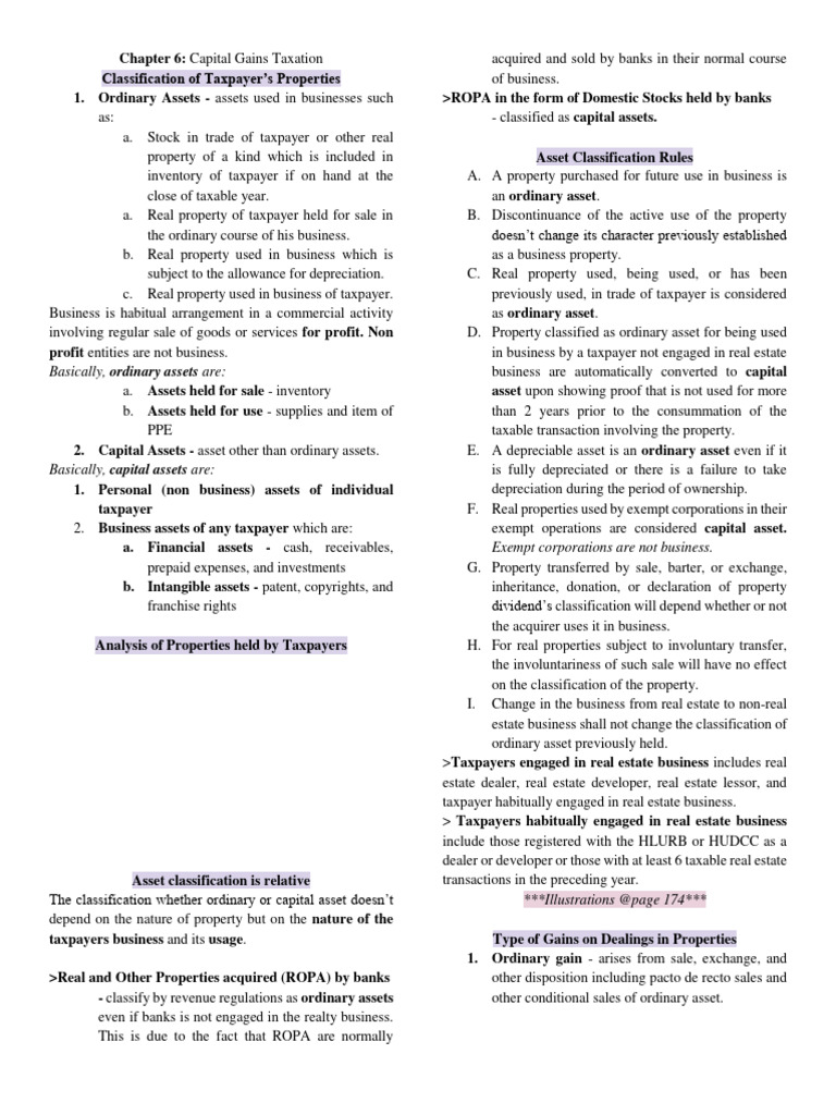 2. Capital Assets - asset other than ordinary assets. E. A depreciable asset is an ordinary asset even if it