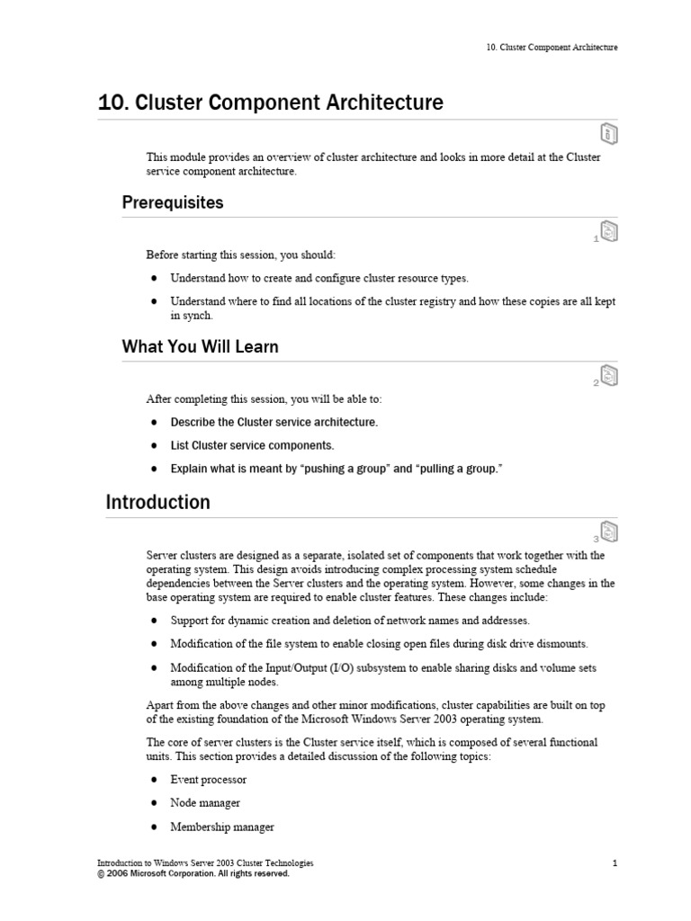 This module provides an overview of cluster architecture and looks in more detail at the Cluster