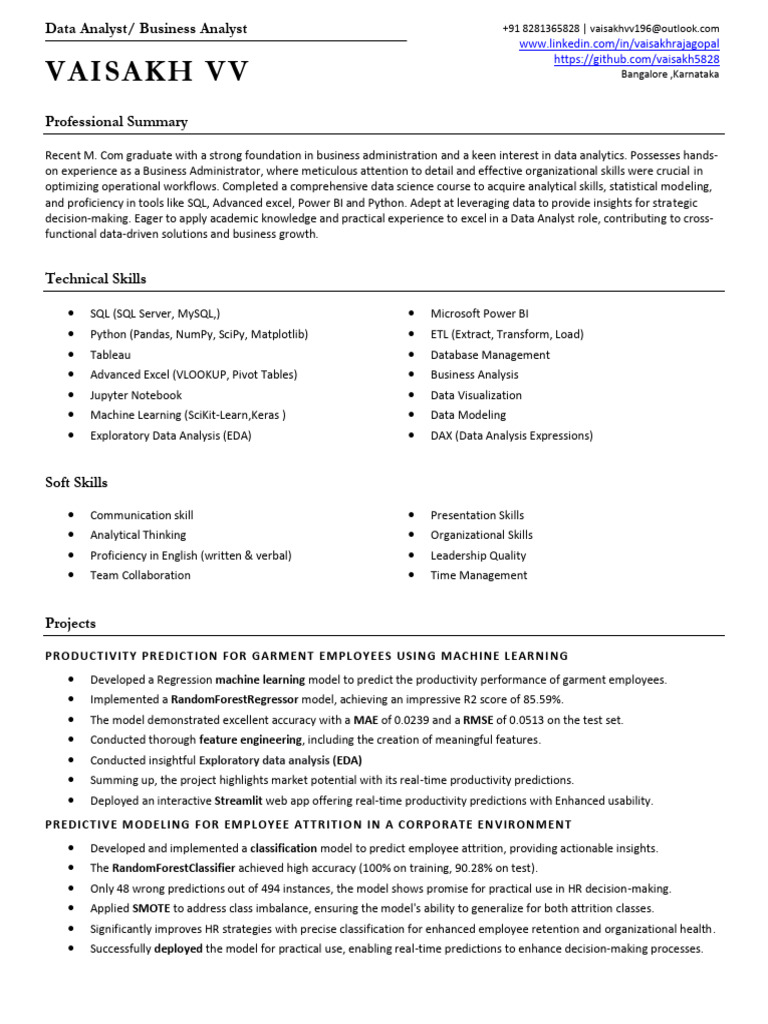 Data Analyst/ Business Analyst +91 8281365828 | vaisakhvv196@outlook.