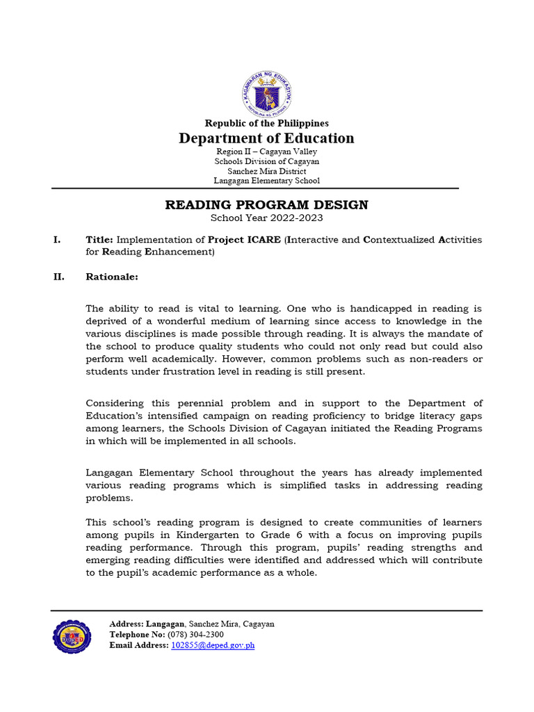 among learners, the Schools Division of Cagayan initiated the Reading Programs