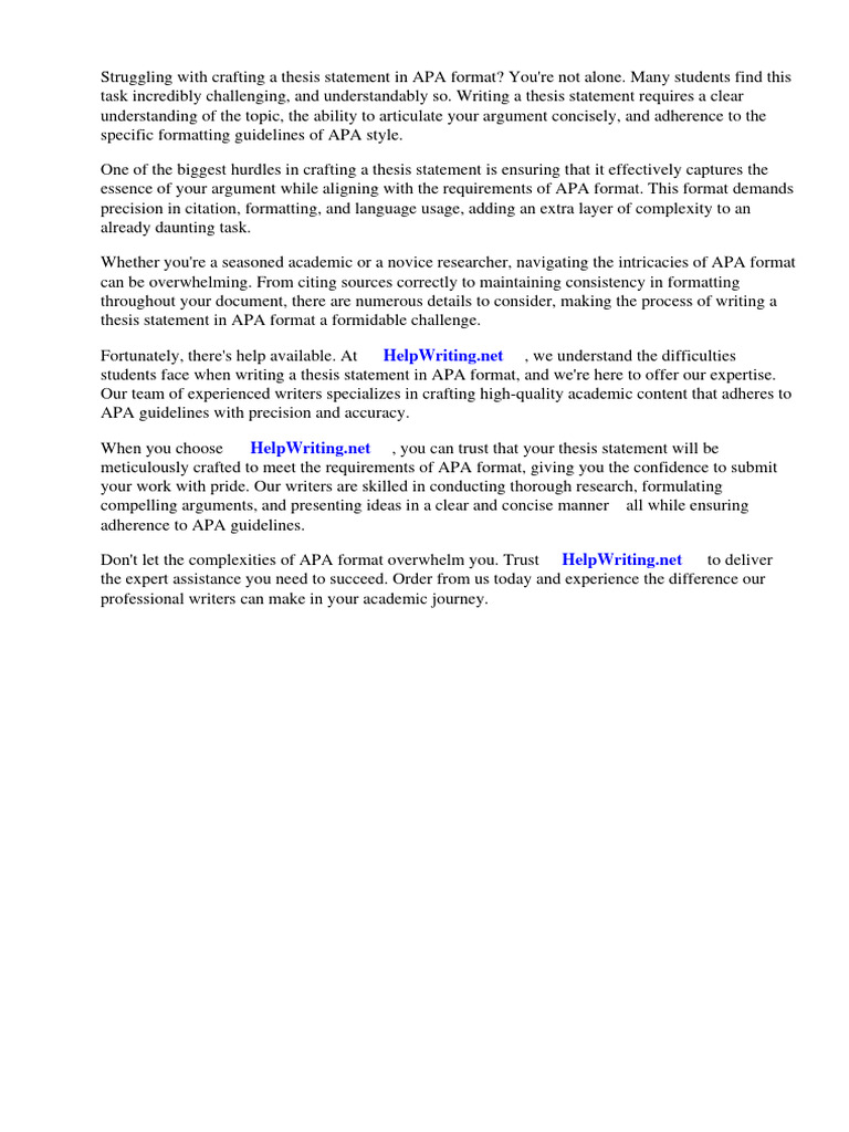 Struggling with crafting a thesis statement in APA format? You're not alone.