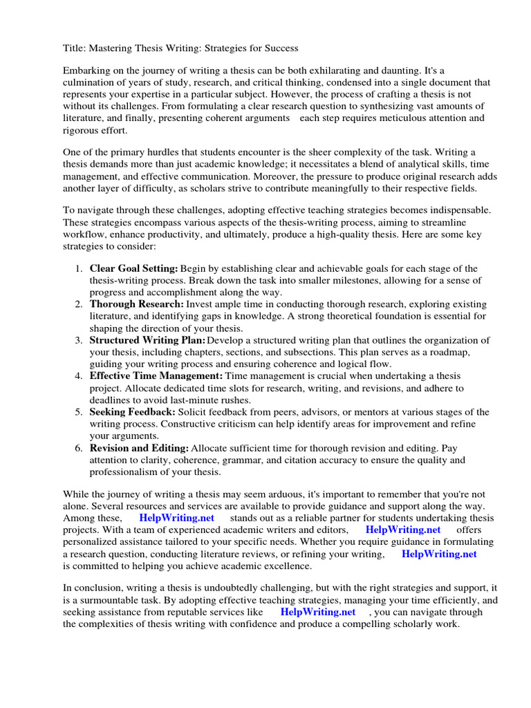 These strategies encompass various aspects of the thesis-writing process, aiming to streamline