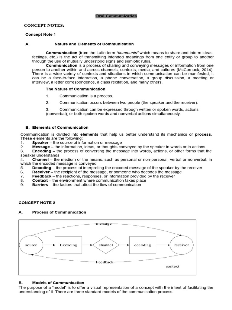 A. Nature and Elements of Communication
