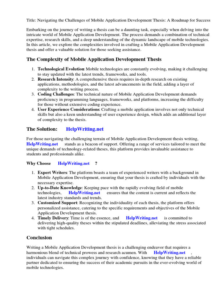 Writing a Mobile Application Development thesis is a challenging endeavor that requires a