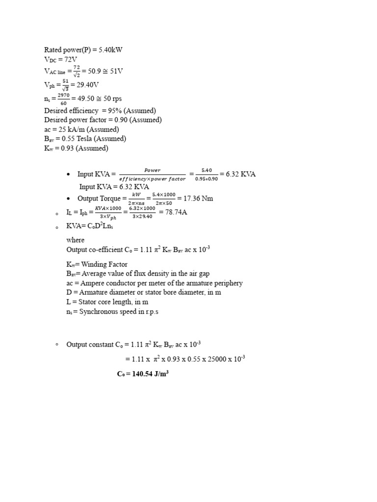 o Air gap length = 0.01 x pole pitch { 𝑙𝑒𝑛𝑔𝑡ℎ 𝑜𝑓 𝑎𝑖𝑟 𝑔𝑎𝑝