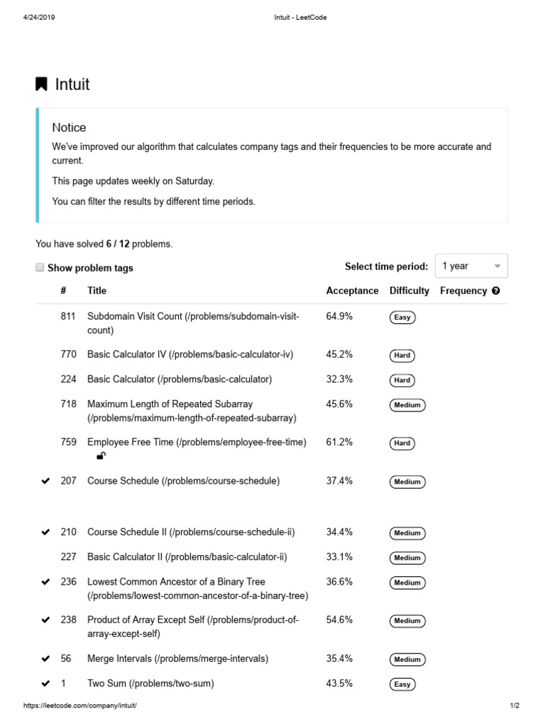 https://leetcode.com/company/intuit/ 1/2