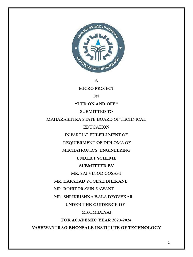 Yashwantrao Bhonsale Institute of Technology has completed the Microproject