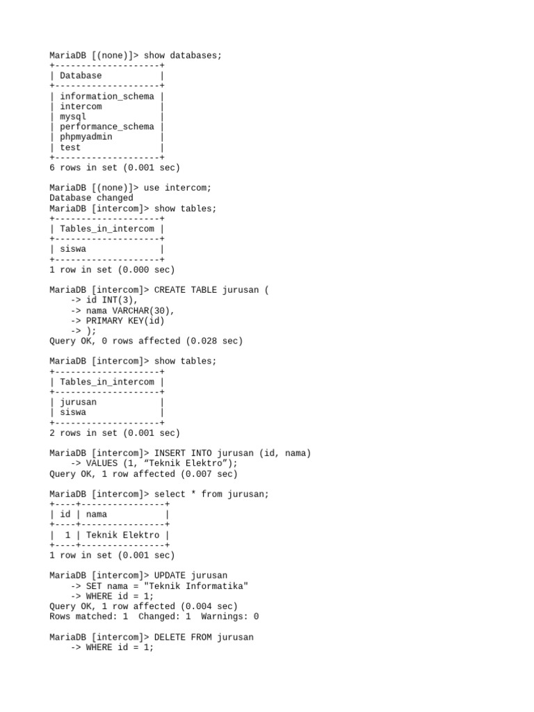 MariaDB [intercom]> SELECT id, nama from jurusan;