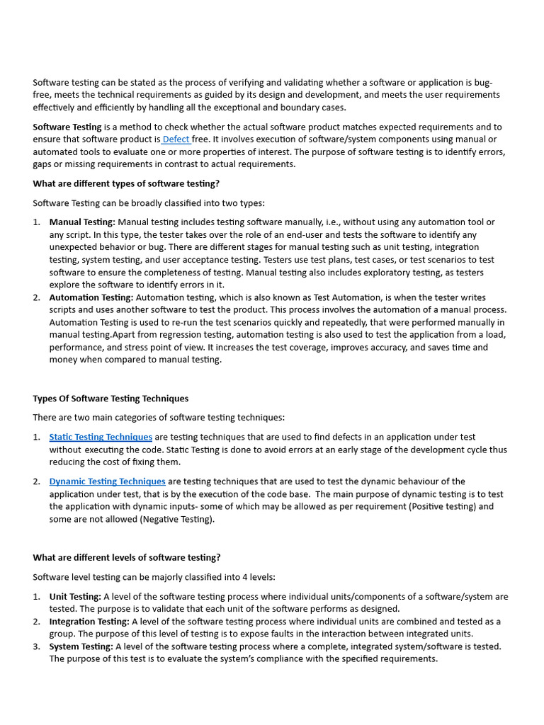 Software testing can be stated as the process of verifying and validating whether a software or application is bug-