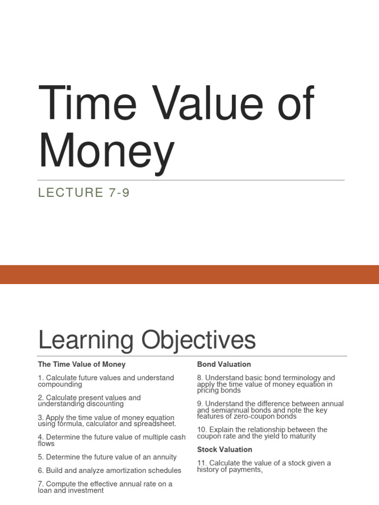 1. Calculate future values and understand 8. Understand basic bond terminology and