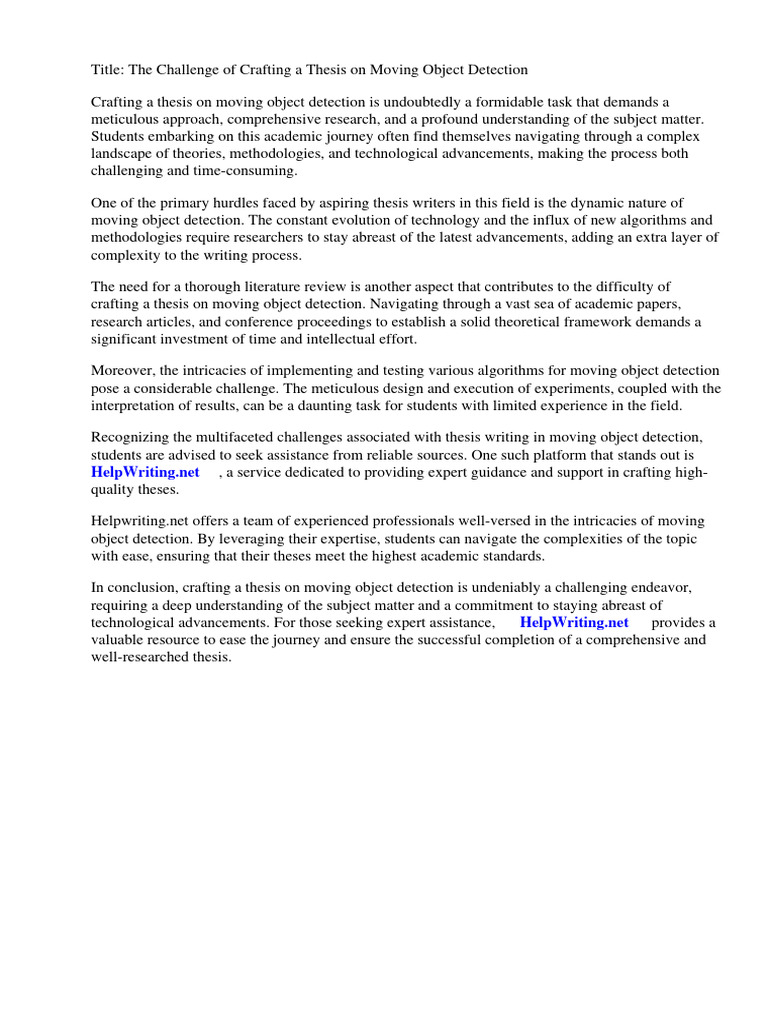 Crafting a thesis on moving object detection is undoubtedly a formidable task that demands a