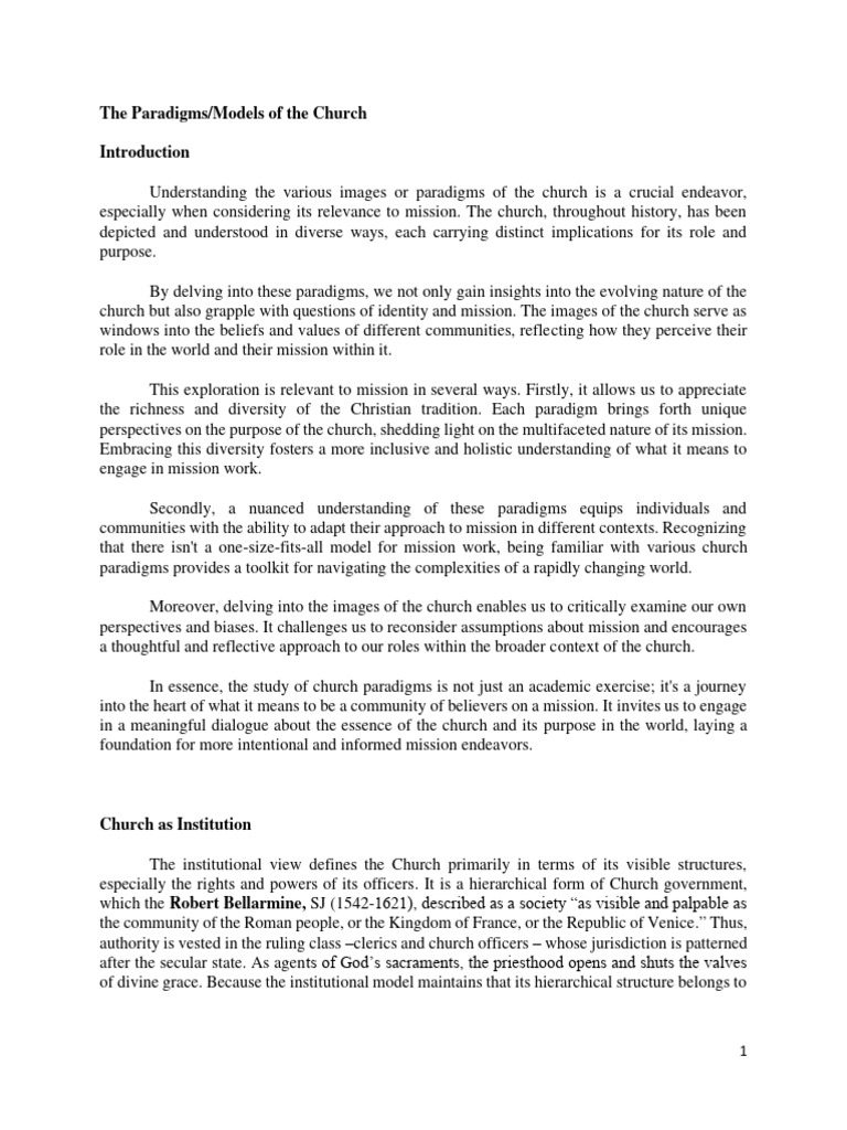 Understanding the various images or paradigms of the church is a crucial endeavor,