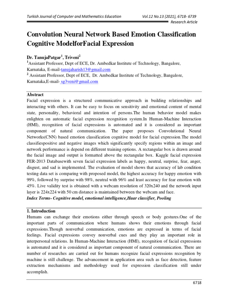 Networks(CNN) based emotion classification cognitive model for facial expression.The model