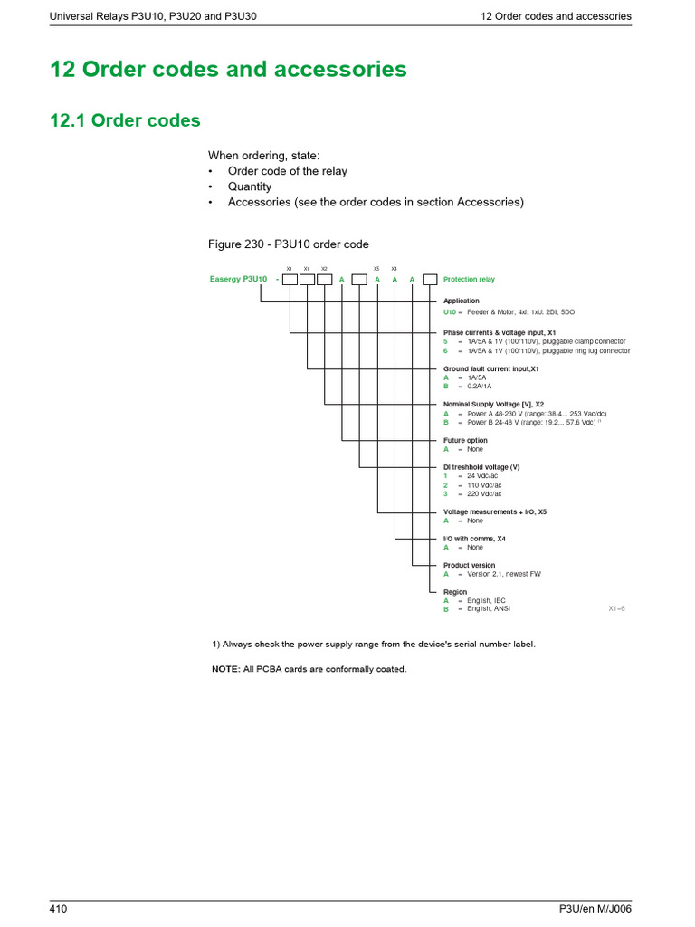 12 Order codes and accessories Universal Relays P3U10, P3U20 and P3U30