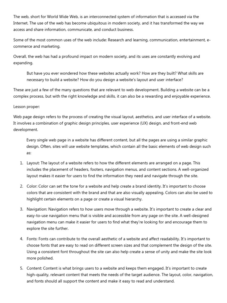 1. Layout: The layout of a website refers to how the different elements are arranged on a page. This
