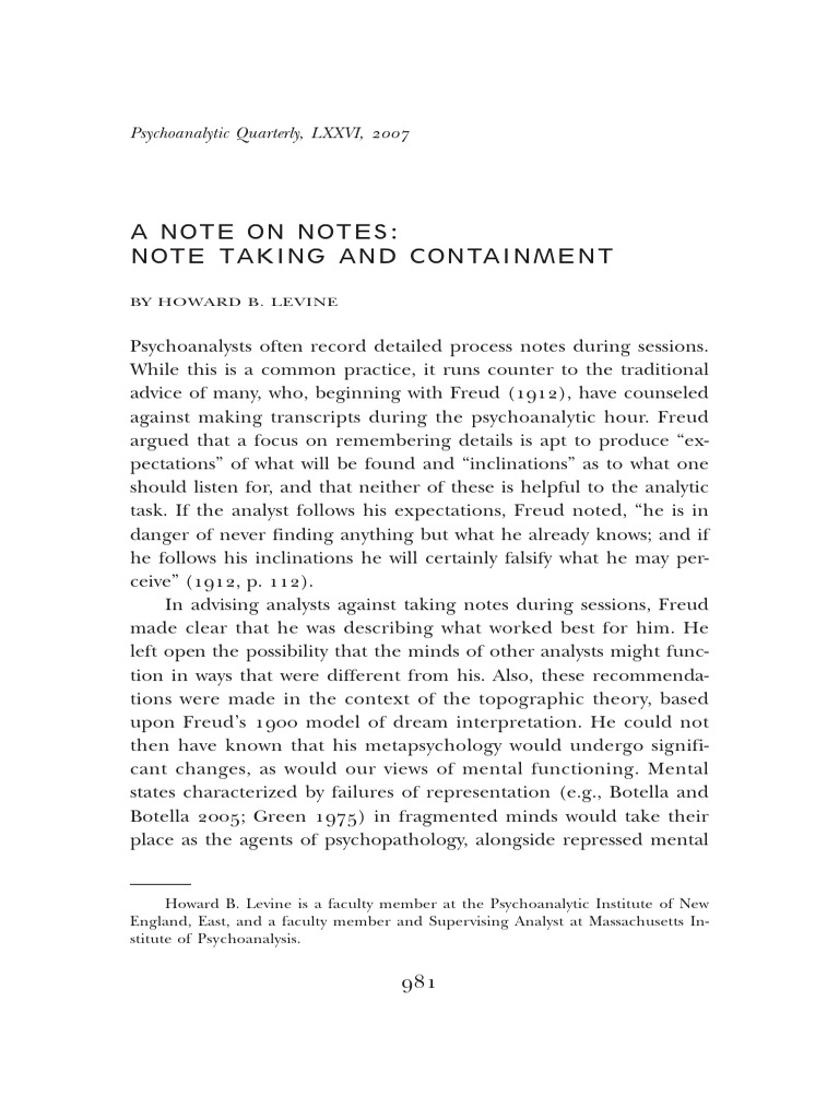 A NOTE ON NOTES: NOTE TAKING AND CONTAINMENT 989