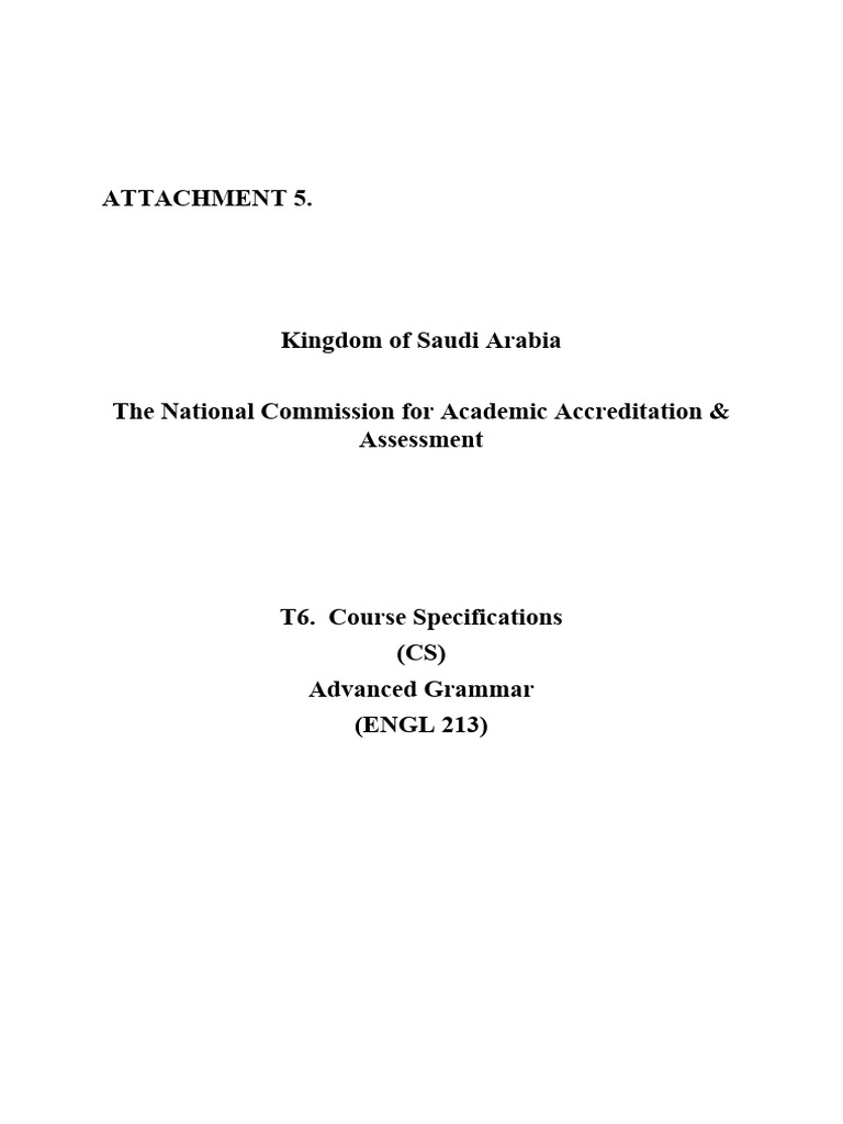 1. Course title and code: Advanced Grammar (ENGL 213)