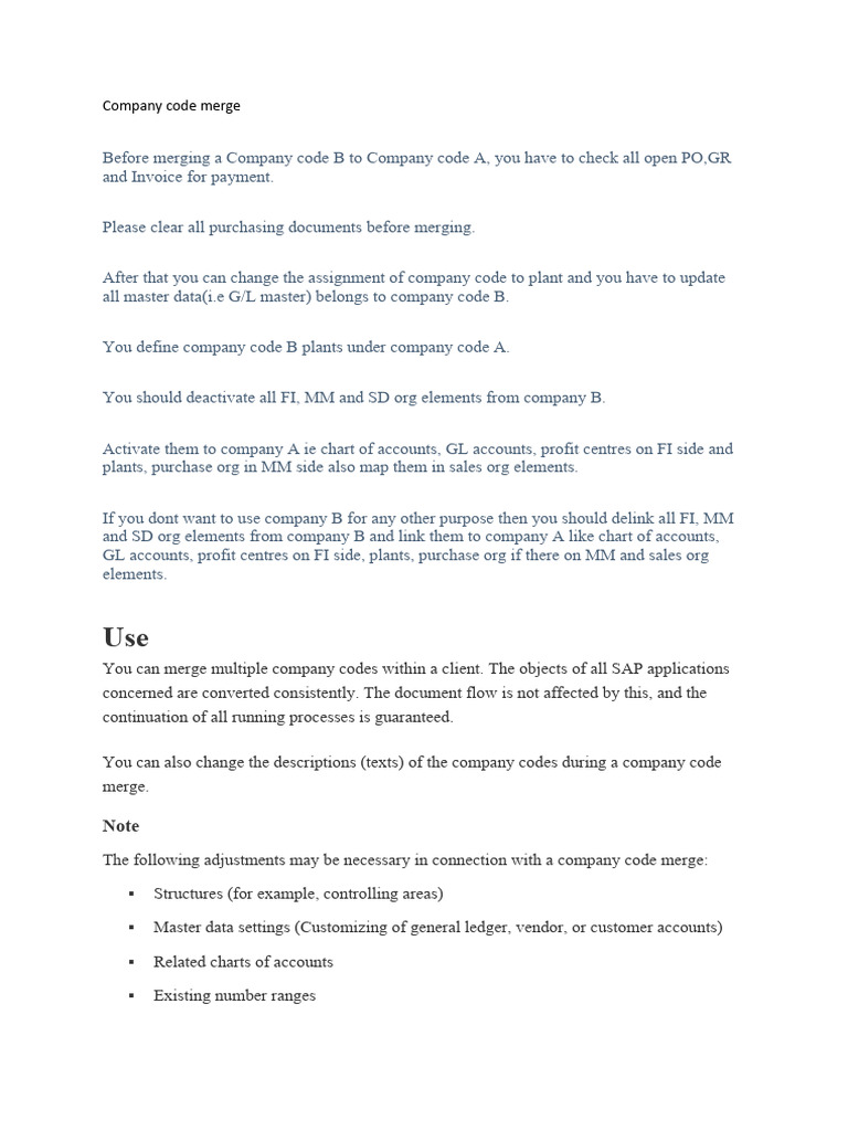Before merging a Company code B to Company code A, you have to check all open PO,GR