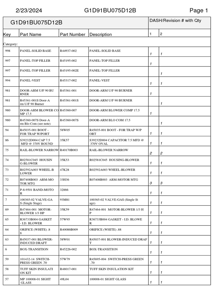 981 DOOR-ARM U/F 90 BU R45361-001 DOOR-ARM U/F 90 BURNER