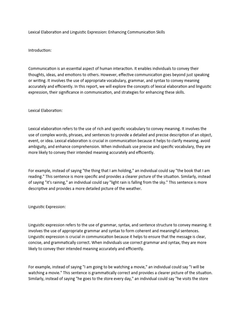 accurately and efficiently. In this report, we will explore the concepts of lexical elaboration and linguistic