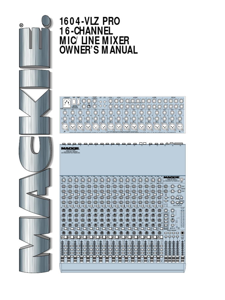 CONCEIVED, DESIGNED, AND MANUFACTURED BY MACKIE DESIGNS INC • WOODINVILLE • WA • USA • MADE IN USA • FABRIQUE AU USA • COPYRIGHT ©1998 • THE FOLLOWING ARE TRADEMARKS OR REGISTERED TRADEMARKS OF MACKIE DESIGN INC.: "MACKIE", "VLZ", AND THE "RUNNING MAN" FIGURE • US PATENT NUMBER 29/049,129