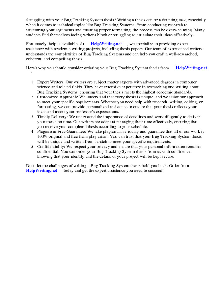 Here's why you should consider ordering your Bug Tracking System thesis from ⇒ HelpWriting.net