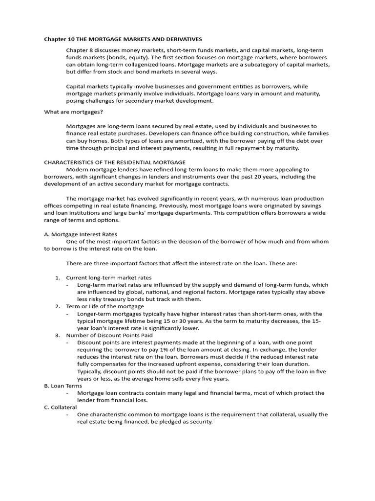 Chapter 10 THE MORTGAGE MARKETS AND DERIVATIVES