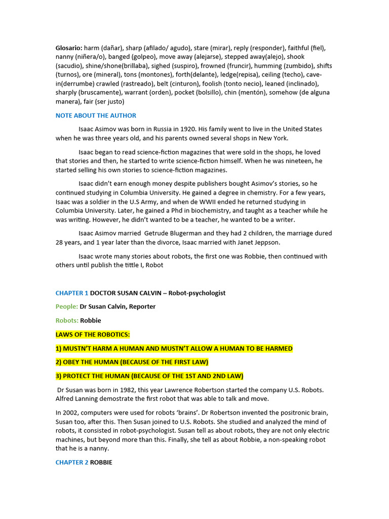 The chapter ends telling about in 2003 speaking robots were created, Dr Susan Calvin talking