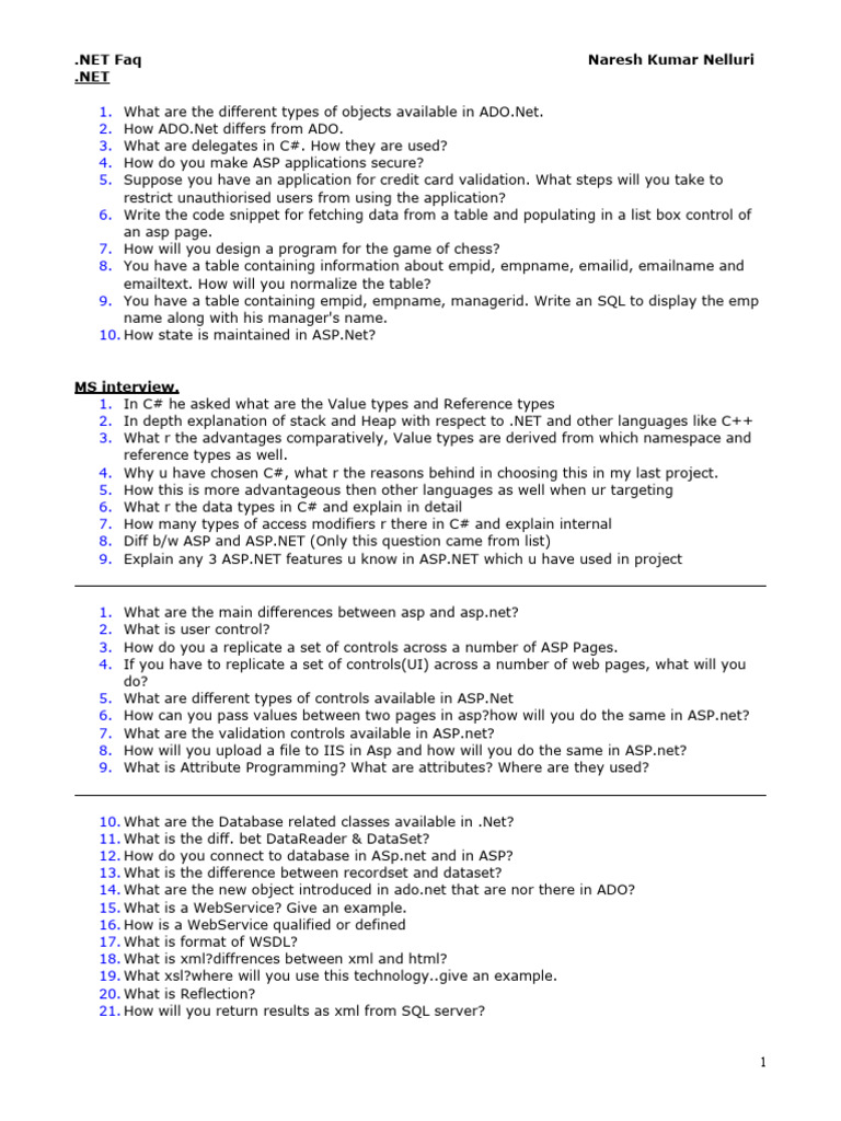 .NET Faq Naresh Kumar Nelluri
