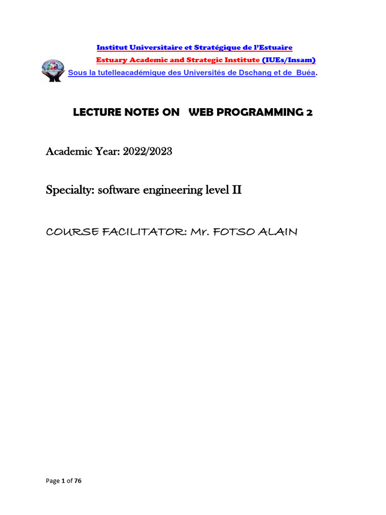 The objective of this course is to enable you to build dynamic websites entirely on your