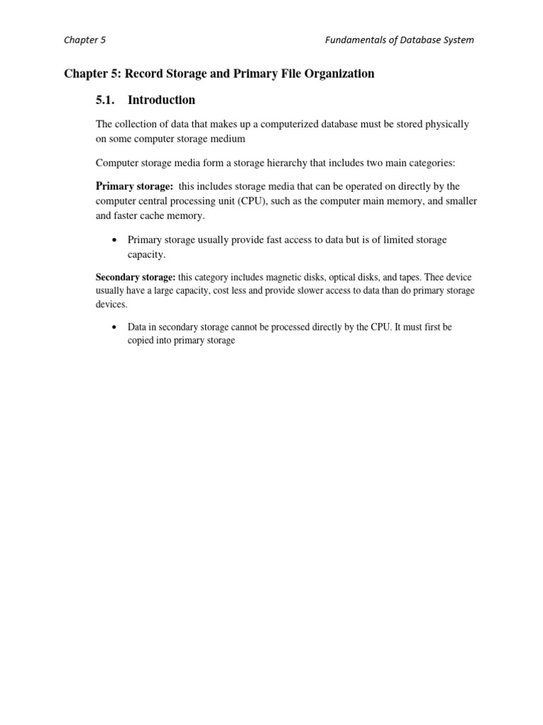 o In the file, every record has a unique id, and every page in a file is of the same size. It is