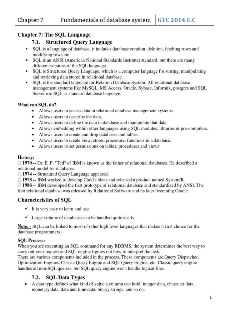 Chapter 7 Fundamentals of database system GTC 2014 E.C
