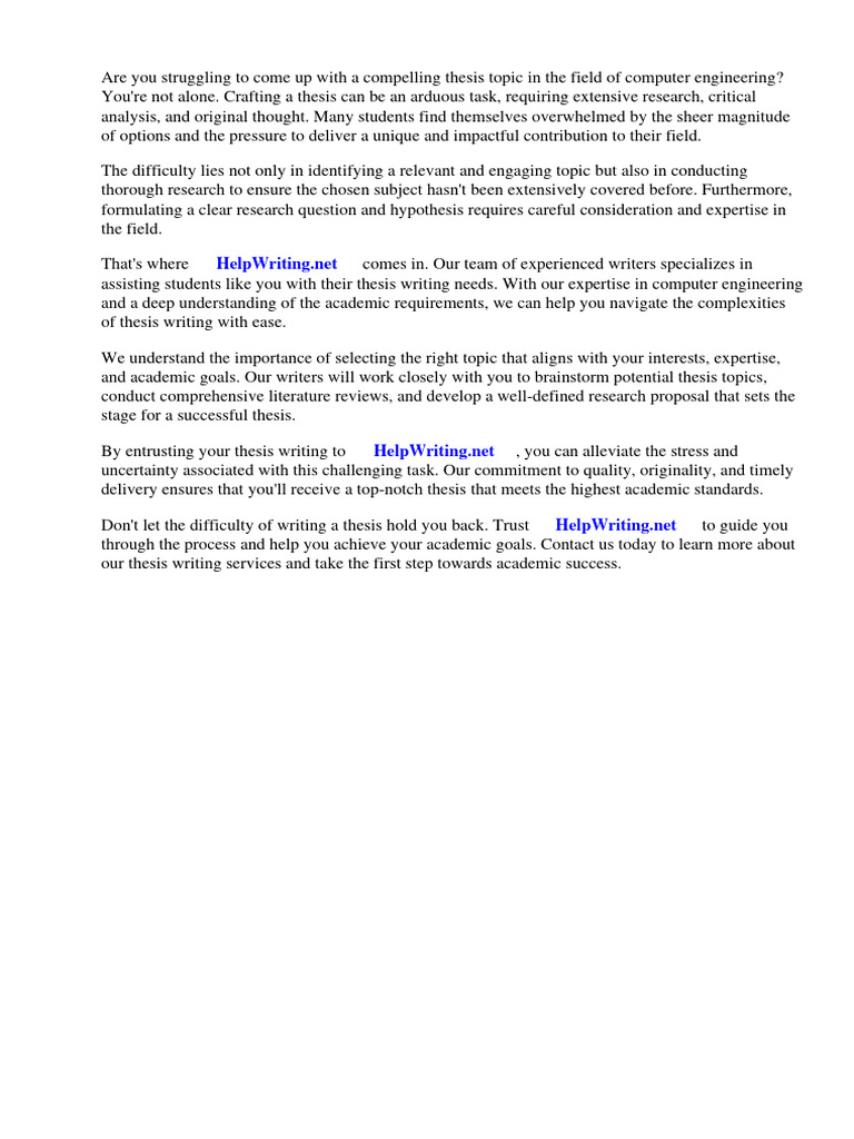 essay. Writing a thesis in computer engineering is a difficult task that many students fail to earn the