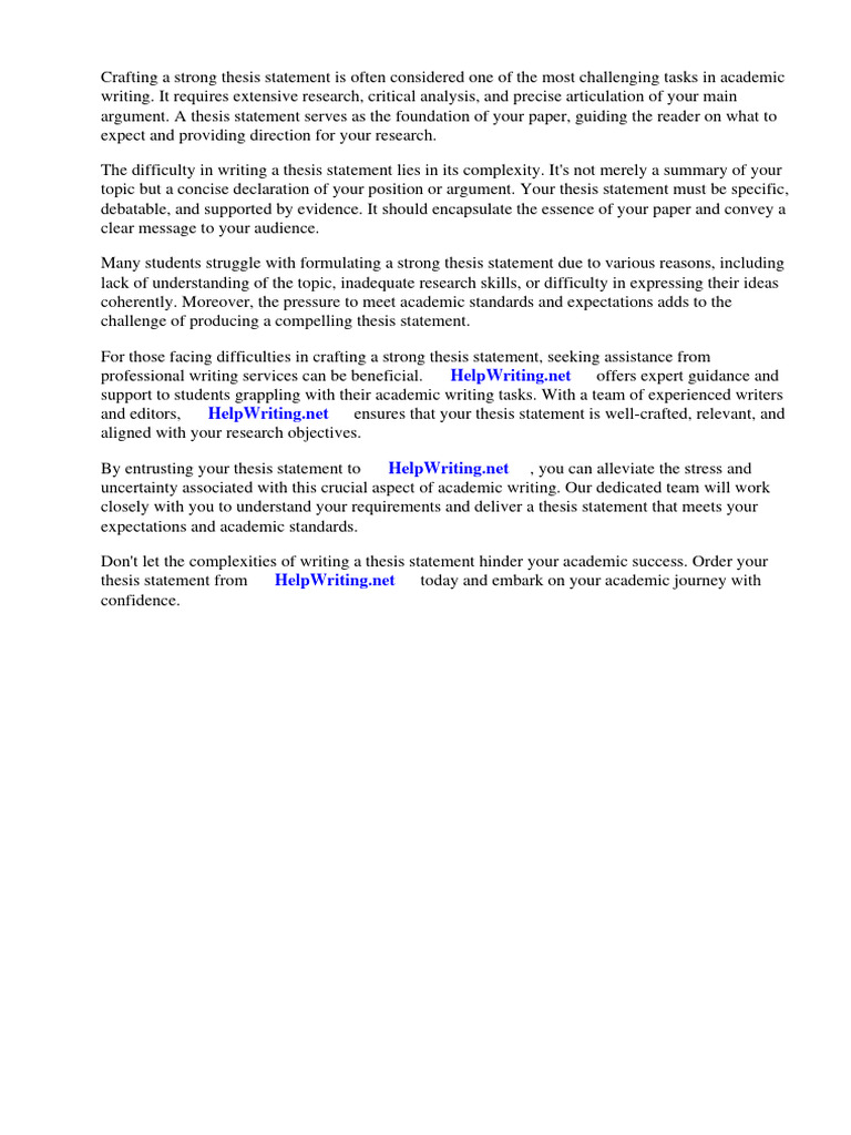 and editors, ⇒ HelpWriting.net ⇔ ensures that your thesis statement is well-crafted, relevant, and