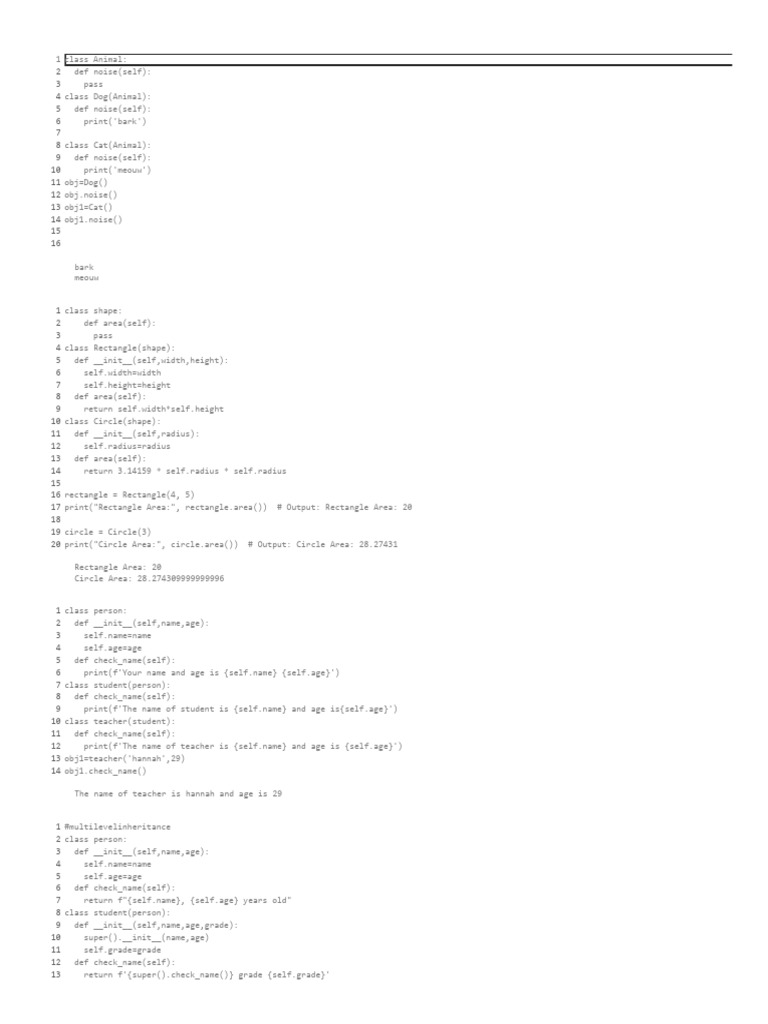 17 print("Rectangle Area:", rectangle.area()) # Output: Rectangle Area: 20