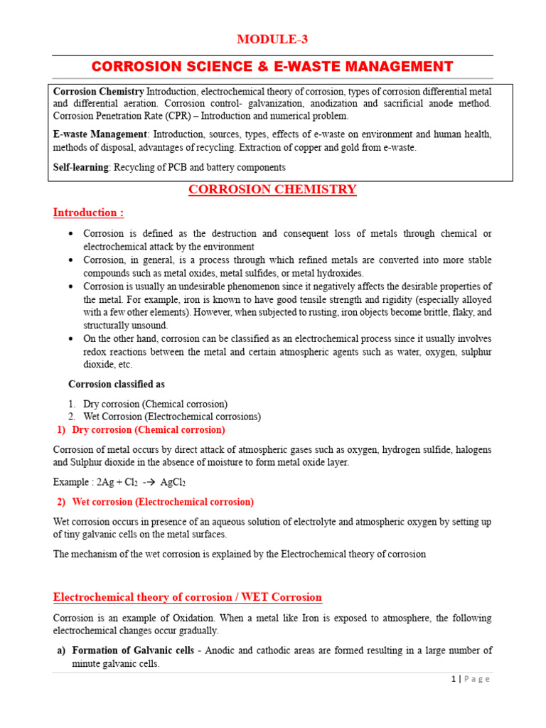 CORROSION SCIENCE & E-WASTE MANAGEMENT