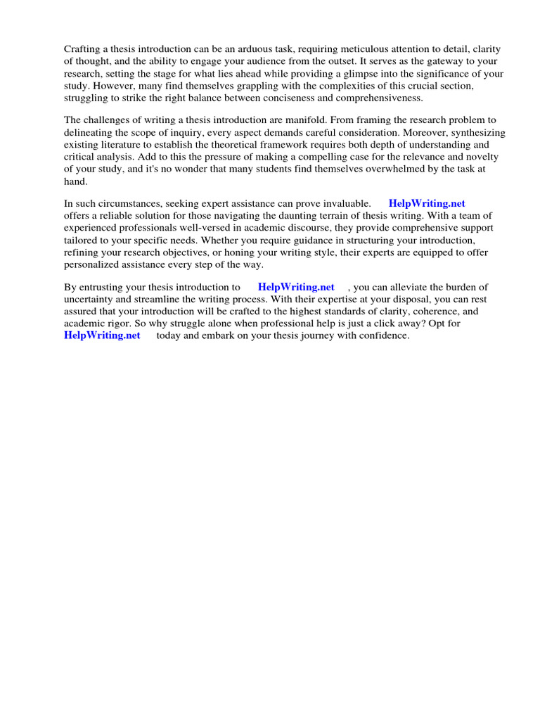 By entrusting your thesis introduction to ⇒ HelpWriting.net ⇔, you can alleviate the burden of