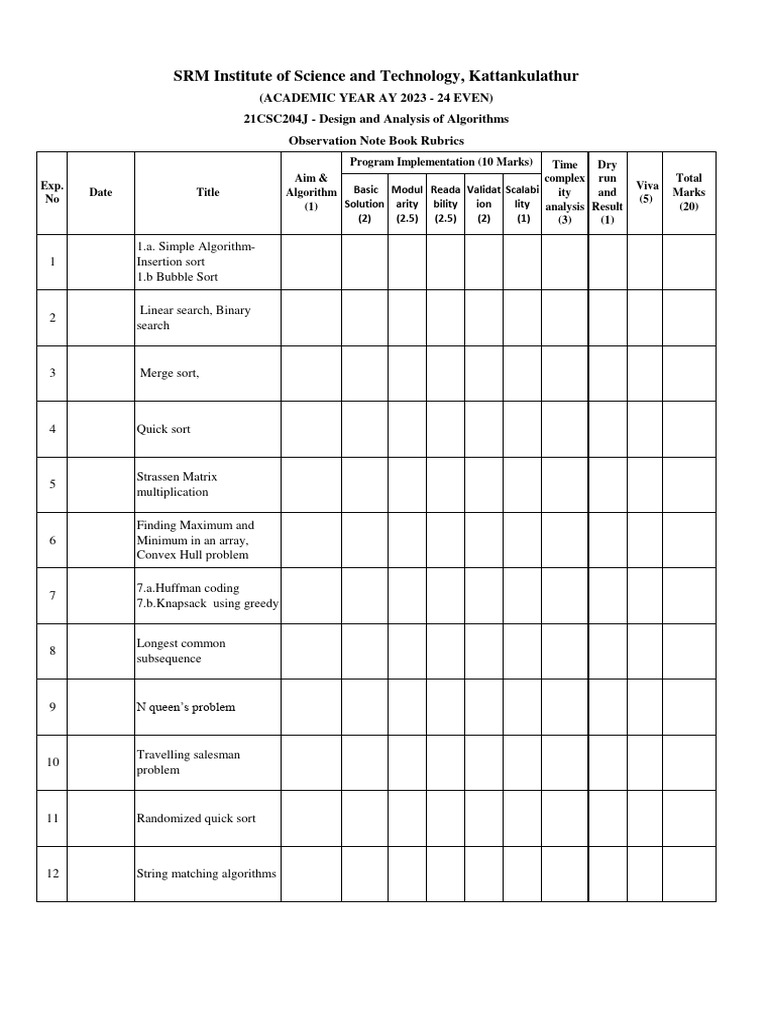 Date Title Algorithm Basic Modul Reada Validat Scalabi ity and Marks