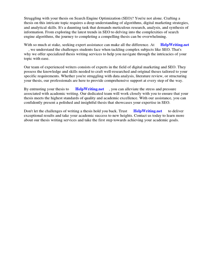 Struggling with your thesis on Search Engine Optimization (SEO)? You're not alone.