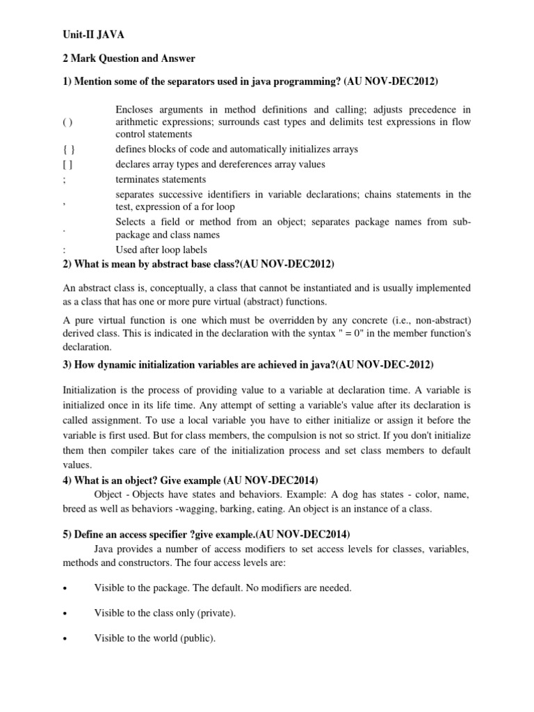 1) Mention some of the separators used in java programming? (AU NOV-DEC2012)