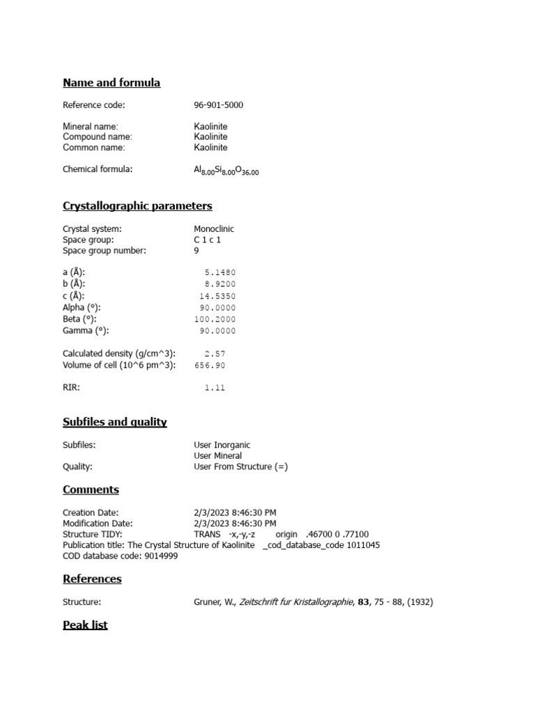 Publication title: The Crystal Structure of Kaolinite _cod_database_code 1011045