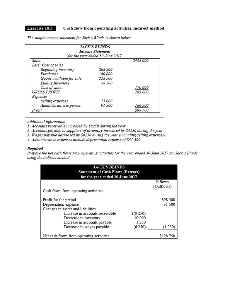Prepare the net cash flows from operating activities for the year ended 30 June 2017 for Jack’s Blinds