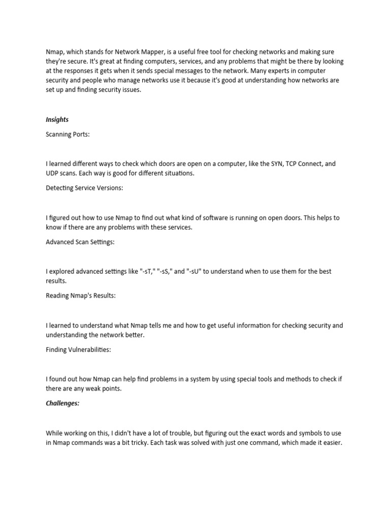 I learned to understand what Nmap tells me and how to get useful information for checking security and