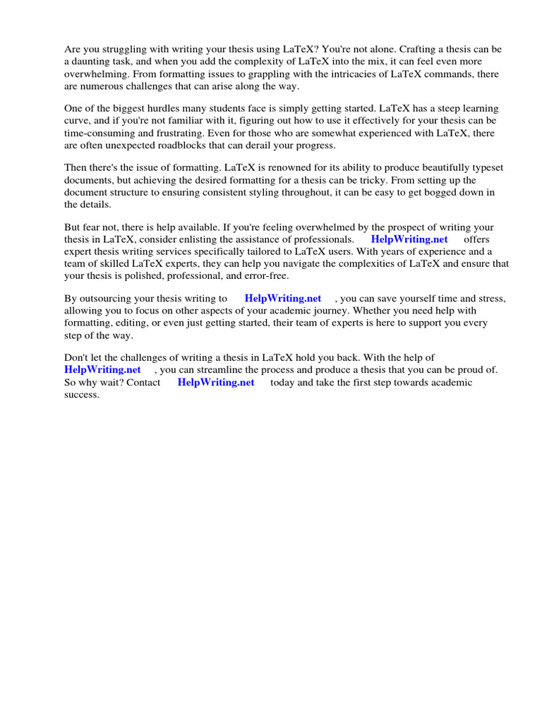 thesis in LaTeX, consider enlisting the assistance of professionals. ⇒ HelpWriting.net ⇔ offers