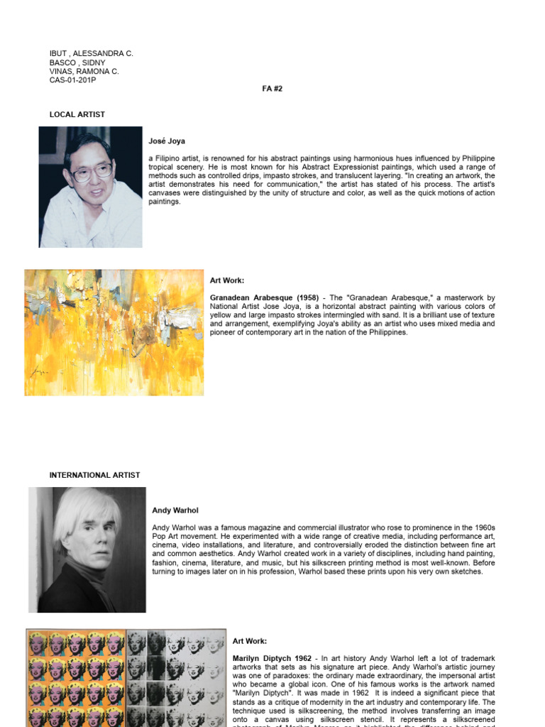and common aesthetics. Andy Warhol created work in a variety of disciplines, including hand painting,