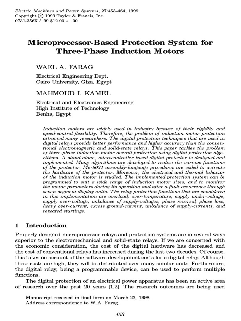 Microprocessor-Based Protection System for Induction Motors 455