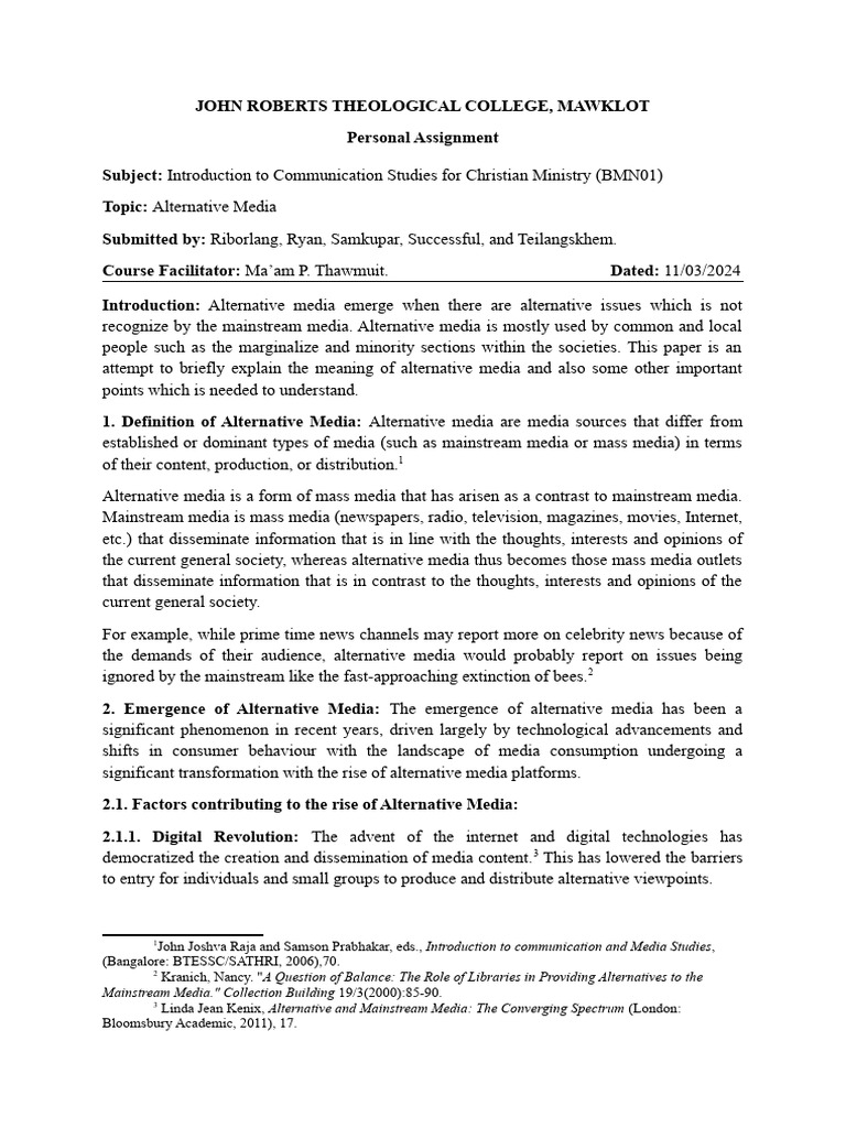 1. Definition of Alternative Media: Alternative media are media sources that differ from
