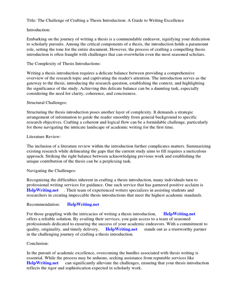 Title: The Challenge of Crafting a Thesis Introduction: A Guide to Writing Excellence